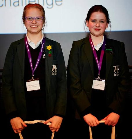 Rosanna Clifton, 13, and 12-year-old Rosie Morgan-Clue developed their ideas for the Streamlined Ships Challenge, where they had to come up with an energy efficient design for a large tanker ship.