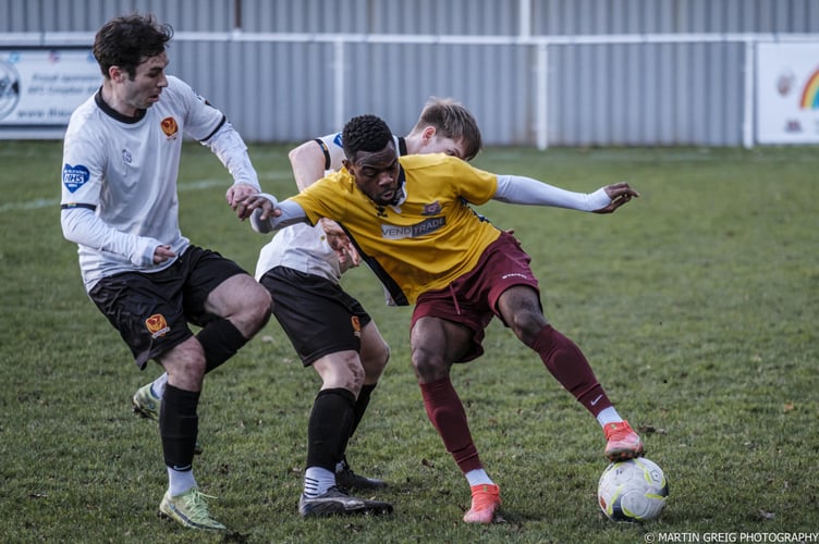 With the visitors down to ten men for ten minutes, Balham began to take control of the game, with centre forward James Adebamo a constant threat to the visiting defence.